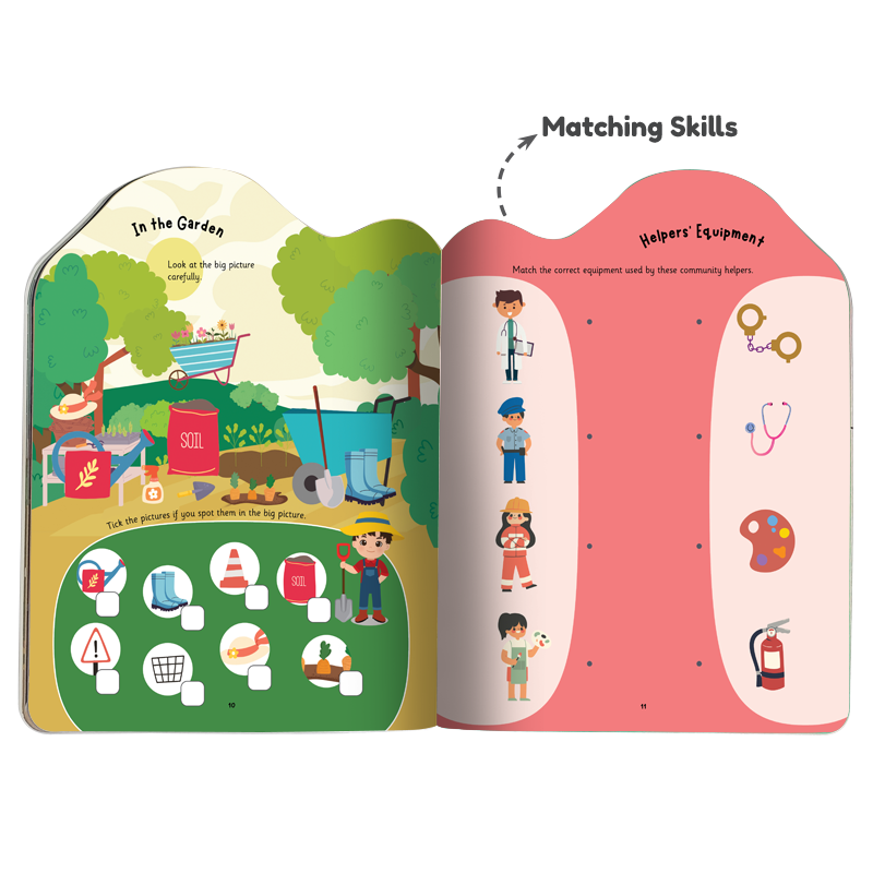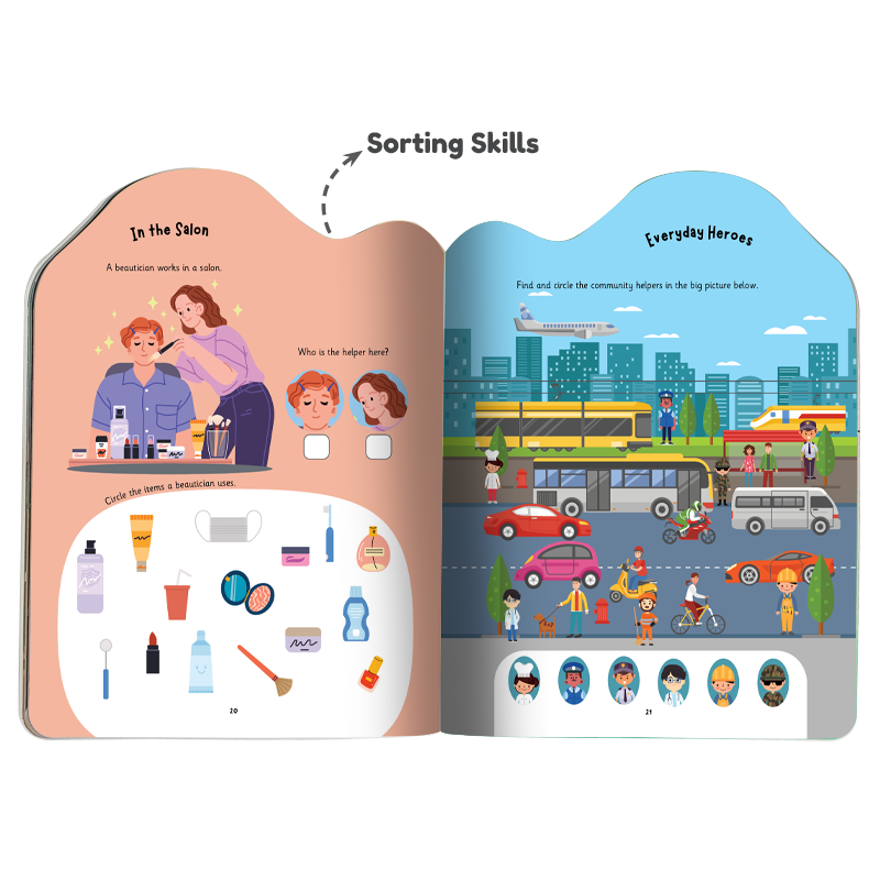 Community Helpers Super Activity Book introduces children to everyday heroes like doctors, nurses, teachers, firefighters, and more through fun and engaging activities like matching, tracing, drawing, and spot the difference. With bright illustrations and glossy, smudge-resistant pages, it’s perfect for little hands, even when things get messy! Lightweight and easy to carry, it’s great for travel, cosy indoor days, holidays, or quiet time at home. This screen-free book keeps kids entertained while building fine motor skills, focus, and early learning, all while inspiring appreciation for the people who help us every day.