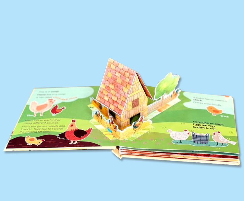 This delightful pop-up book introduces the child to all about Farm animals, an important early years’ concept through amusing and interactive pop-ups. This book takes young readers on a journey to explore farm animals and their shelters. They will learn about what these animals eat, the sounds they make, where they live, and what they provide for us. The lively pop-up images engage children and draw even the most screen-loving readers into the world of farm life. Along the way, children will develop cognitive skills, expand their vocabulary, and practice patience and focus. A perfect addition to any child’s learning journey!