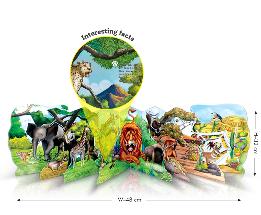 3+ years,12 pages, this book is about Farm animals and their shelters. The reader gets to know about what farm animals eat, what sounds they make, where do they live and what do they give us. The pictures are lively enough to draw even a screen lover into the book. In this interactive and fun pop-up book, the child will learn about what farm animals eat, the sounds they make, where they live, and what they give us. With lively pop-up images, this book captivates young readers and enhances their cognitive skills and vocabulary.