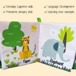 0-24 Months,12 pages,discover the wonderful world of animals with this adorable cloth book! Featuring colourful pictures of wild animals, it encourages early learning, sensory development, and hand-eye coordination. Soft, safe, and washable—perfect for tiny explorers!