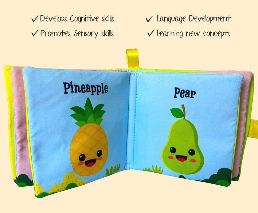 0-24 Months,12 pages,introduce your little one to the colourful world of fruits! This soft, cloth book helps develop sensory skills, hand-eye coordination, and early vocabulary. Durable, Washable & Easy to Hold! Also available in the series: Numbers and Vegetables – Collect them all!