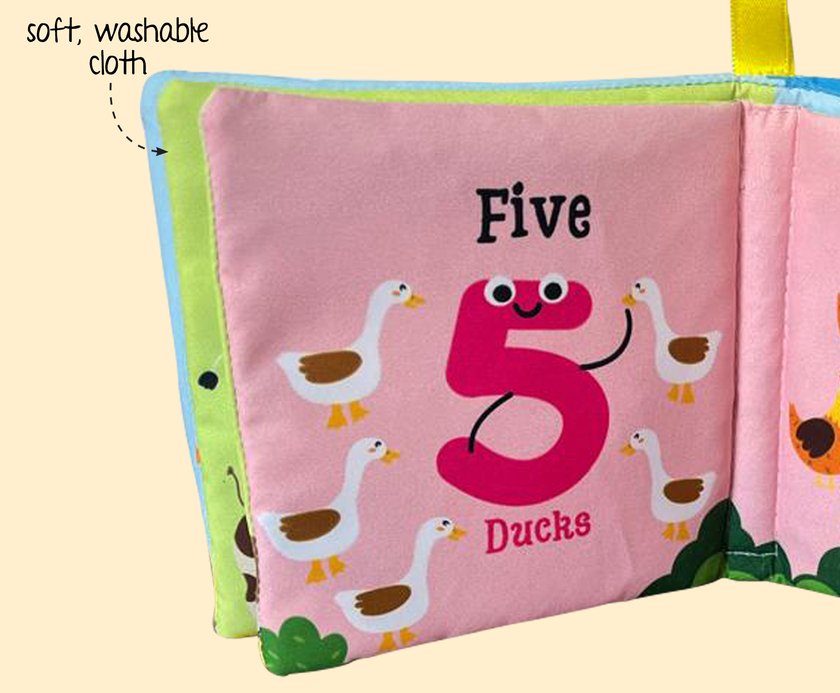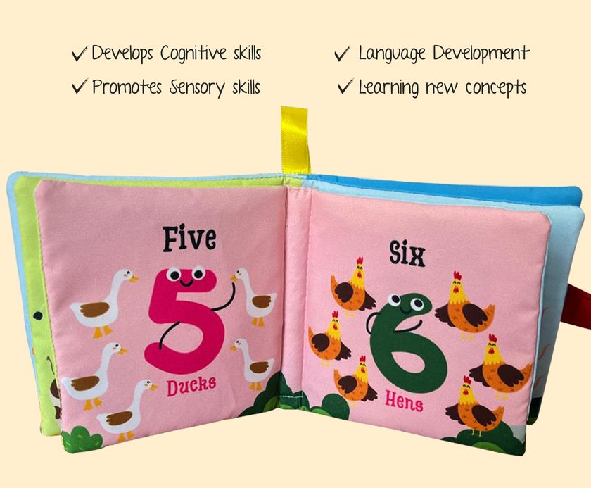 0-24 Months,12 pages,soft, safe, and fun! This small cloth book introduces little ones to numbers in a playful way. It promotes sensory skills, fine motor development, and early counting. Durable, Washable & Easy to Hold! Also available in the series: Fruits | Vegetables – Collect them all!