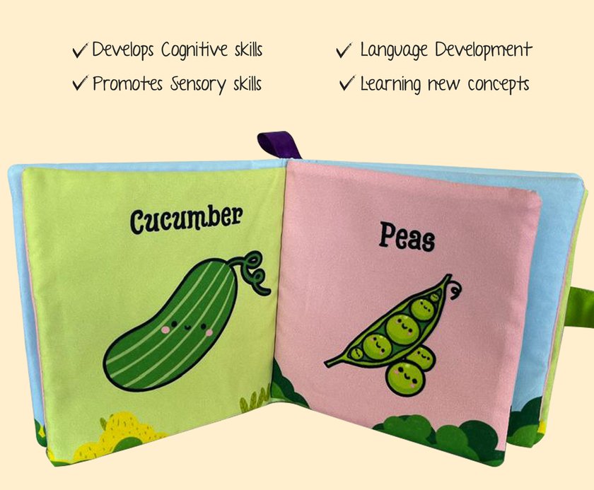 0-24 Months,12 pages,discover the world of vegetables with this soft and safe cloth book! Perfect for tiny hands, it supports sensory play, motor skills, and early vocabulary building. The book is Durable, Washable & Easy to Hold! Also available in the series: Numbers and Fruits– Collect them all!